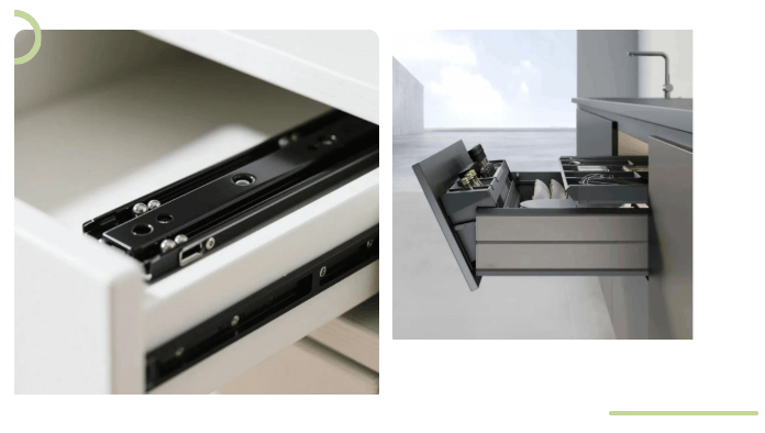 抽屉的体验,往往能直观体现橱柜、衣柜与品质。金利源滑轨系列,4515加厚上海宝钢料打造,承重性能卓越;滚珠轴承结构,带来如丝般顺滑的推拉感受。即使满载重物,也能单指轻启,无声回位, 没有卡顿、滞涩感。